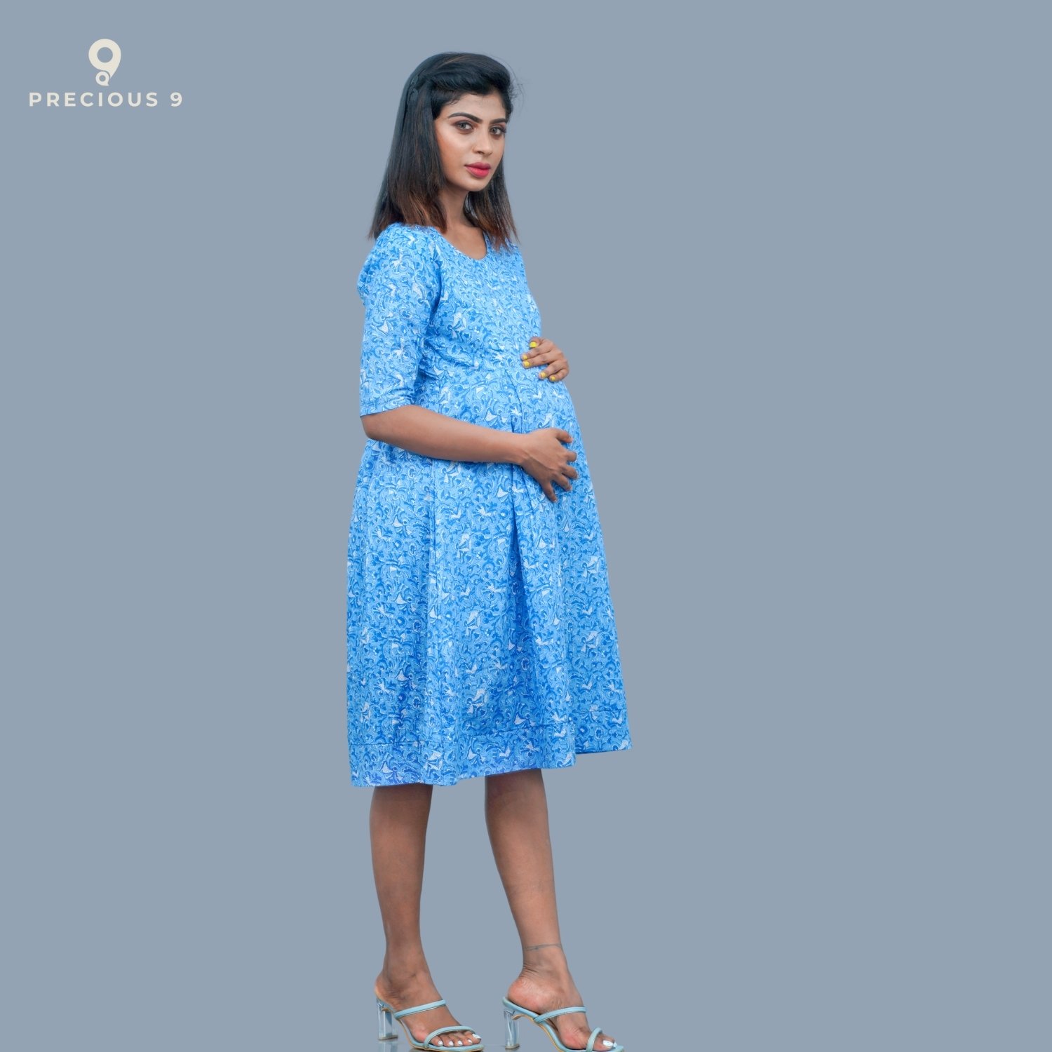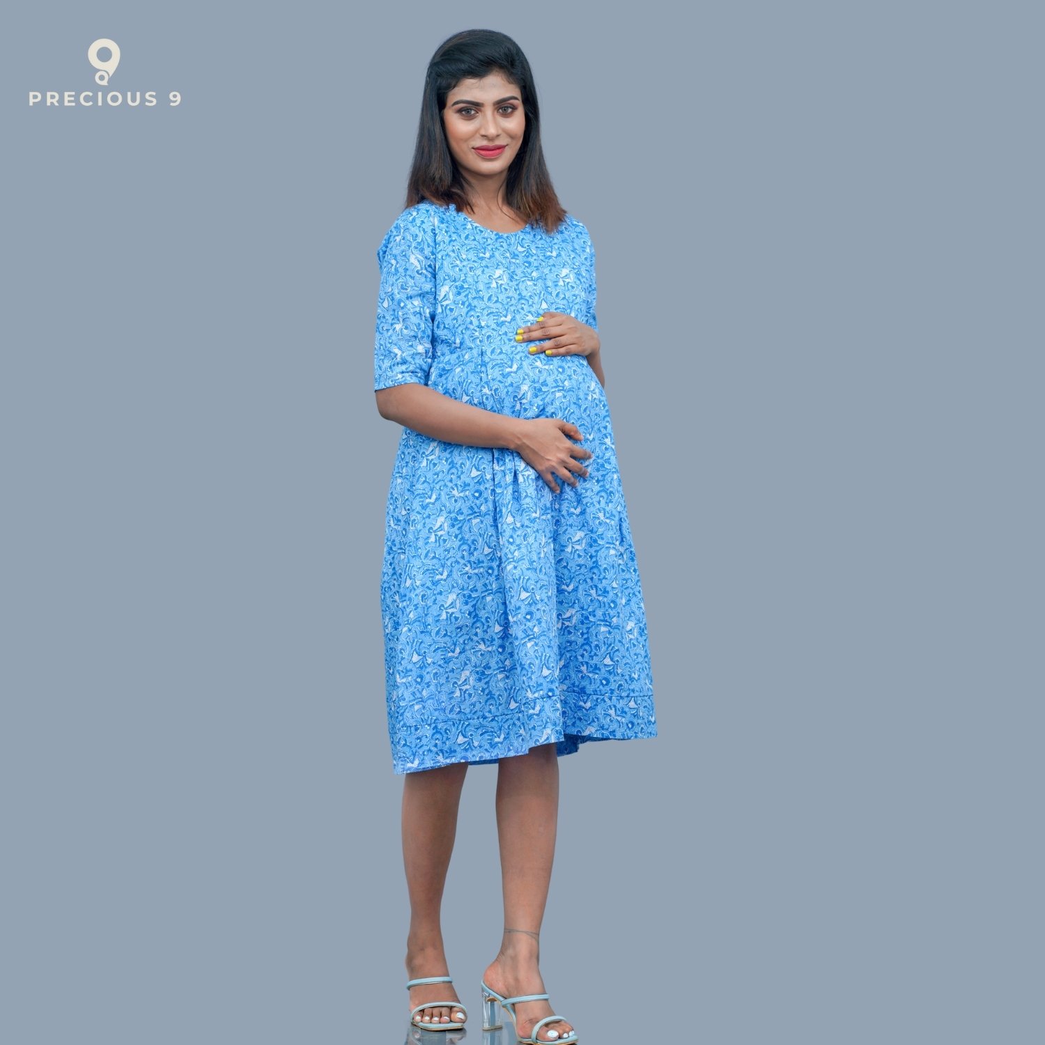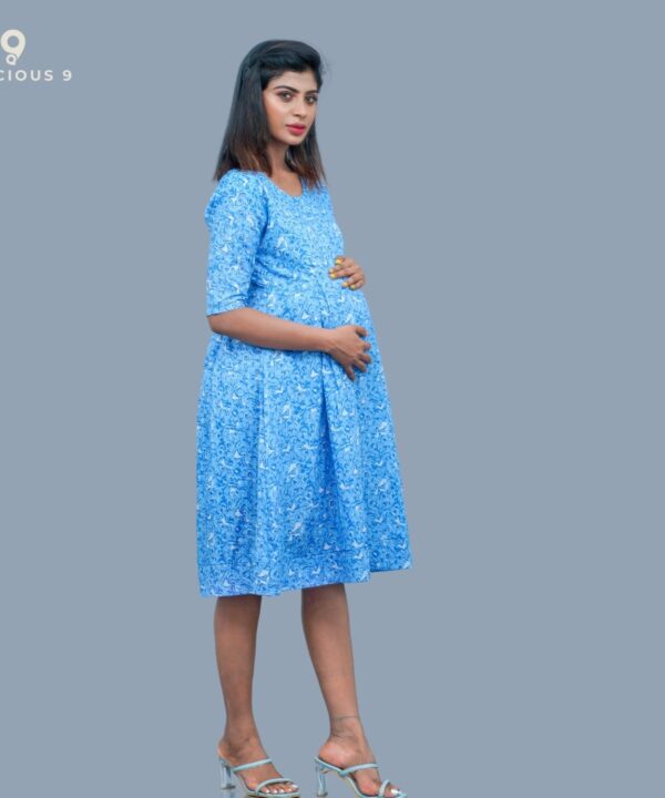 Box pleated cotton maternity short dress