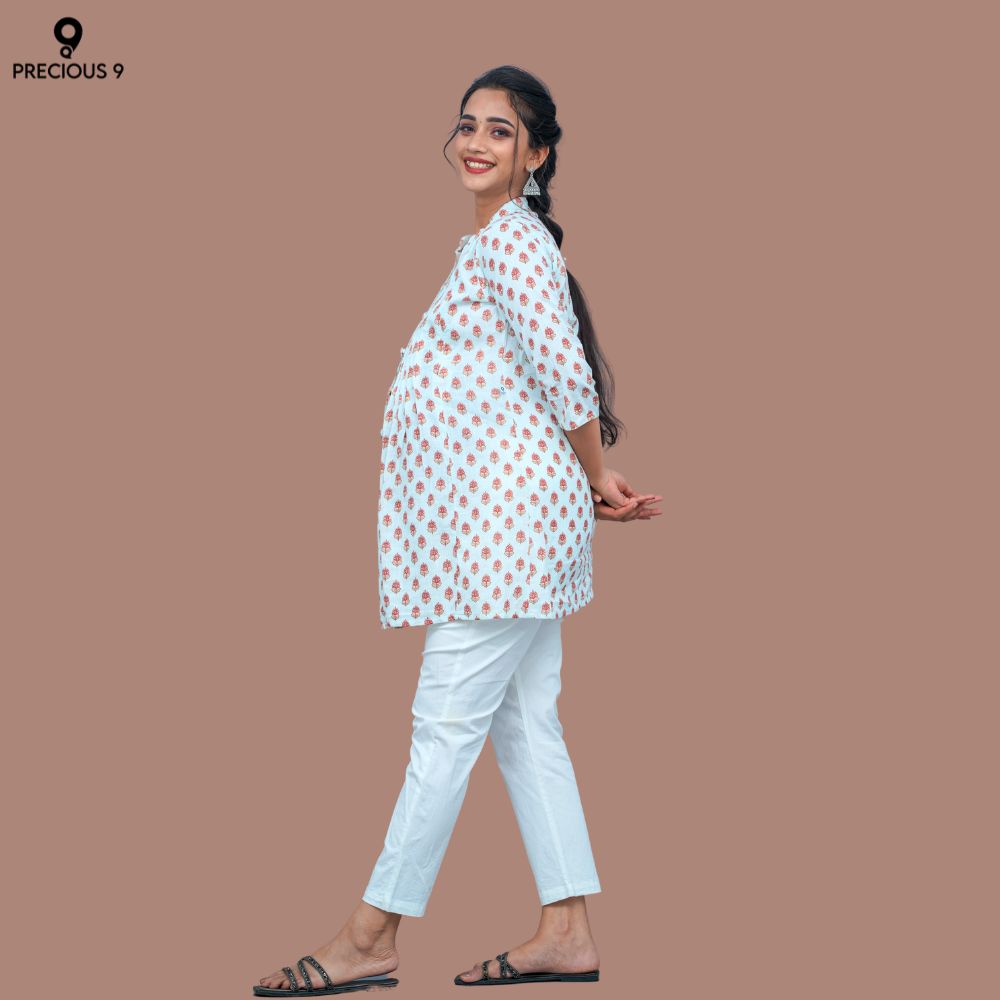 Cotton maternity short top highlighted with pleats