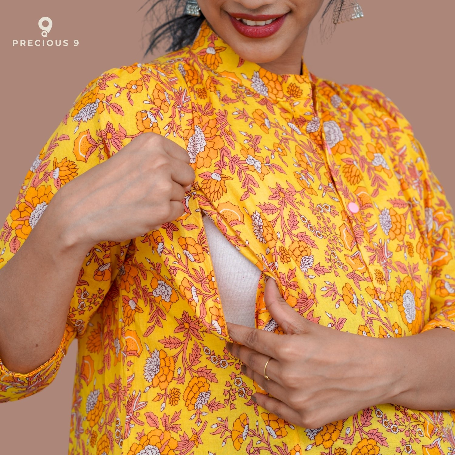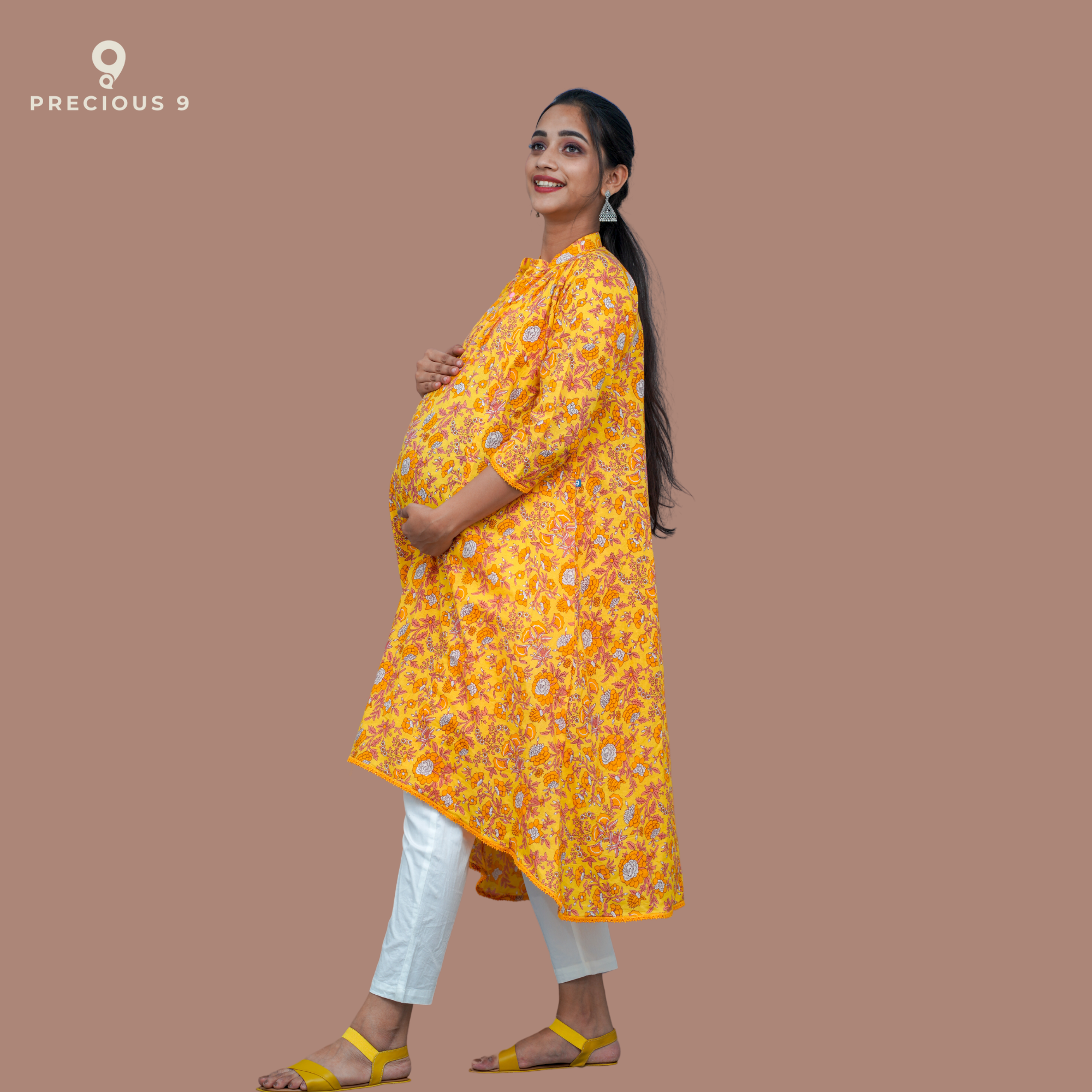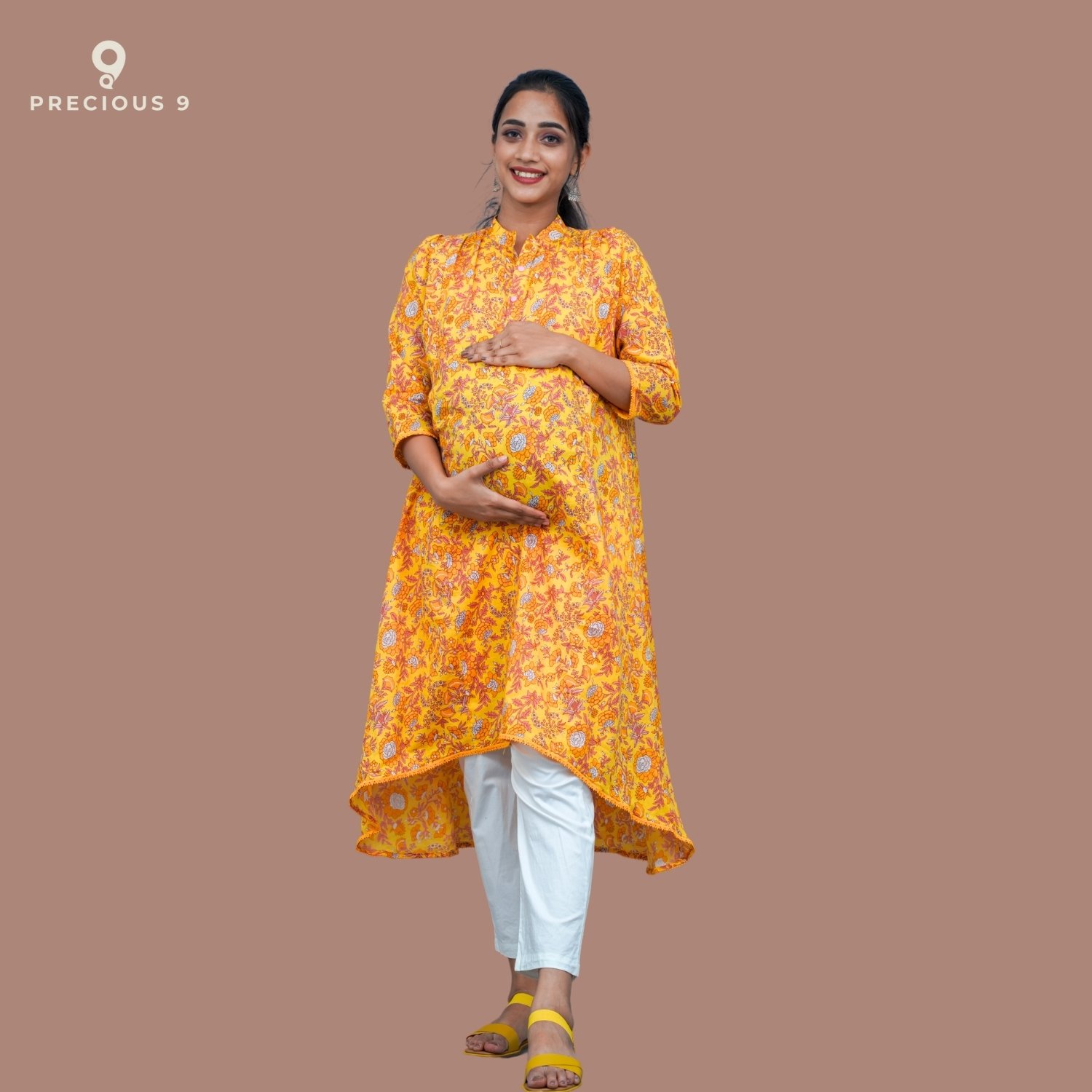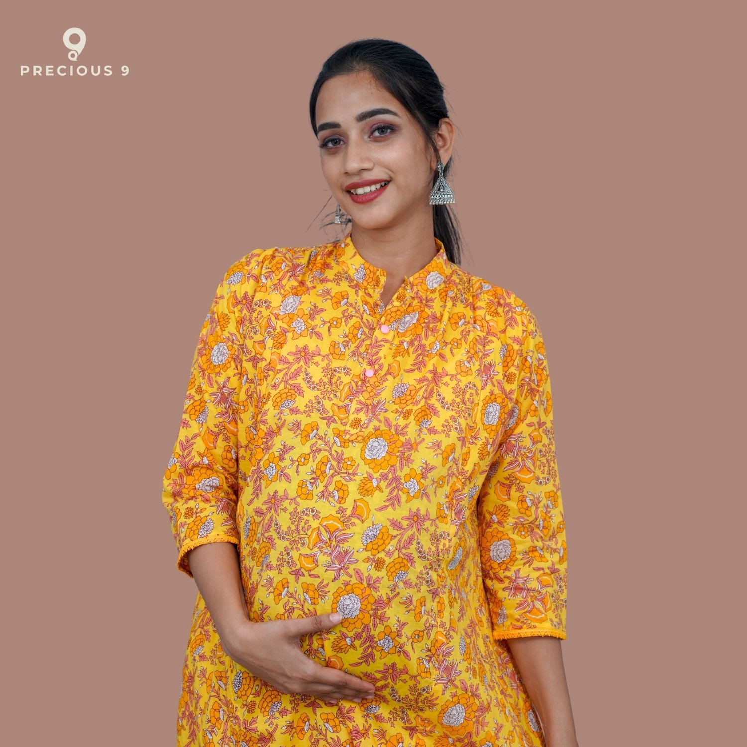 Floral printed cotton maternity kurti