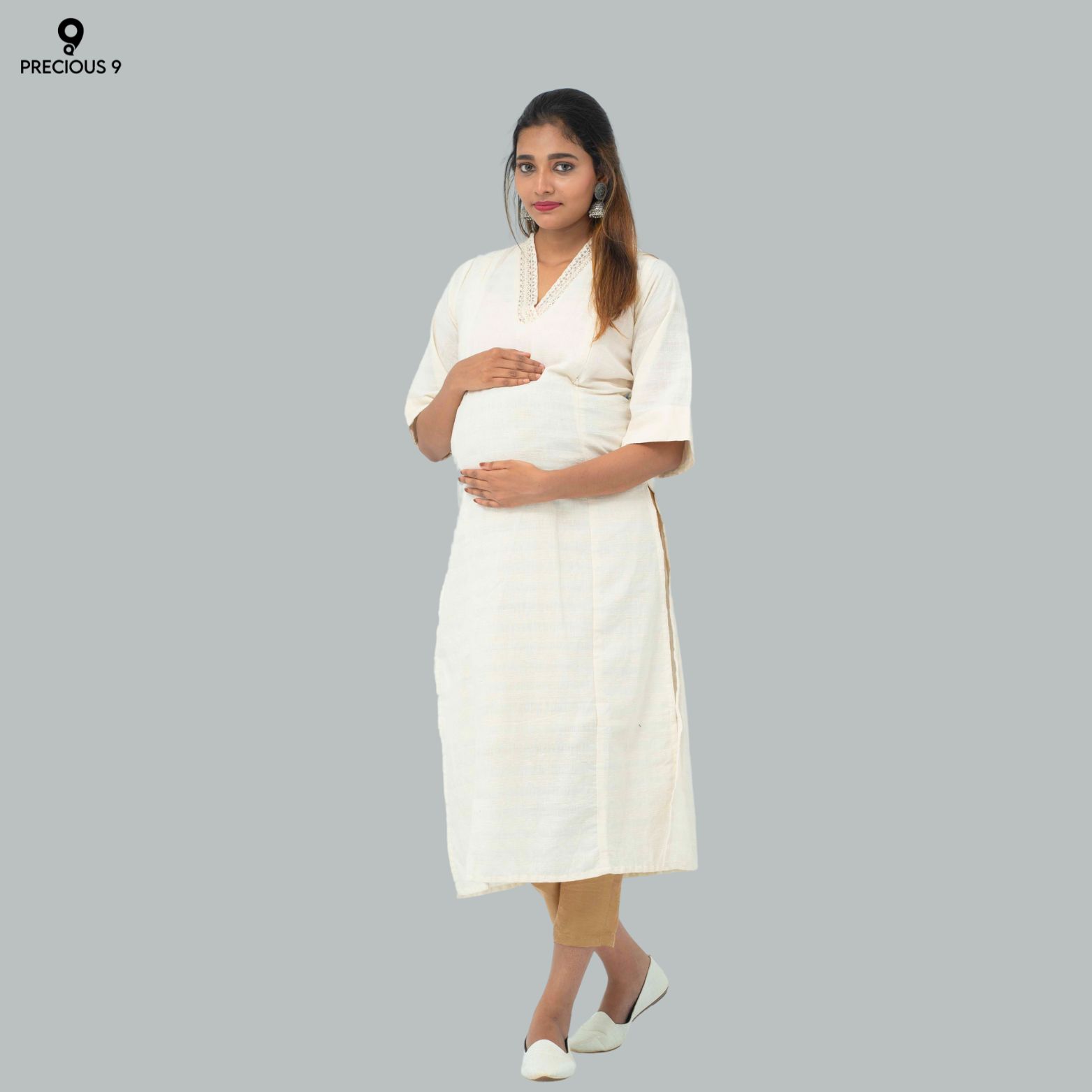 Handloom cotton straight cut maternity kurti
