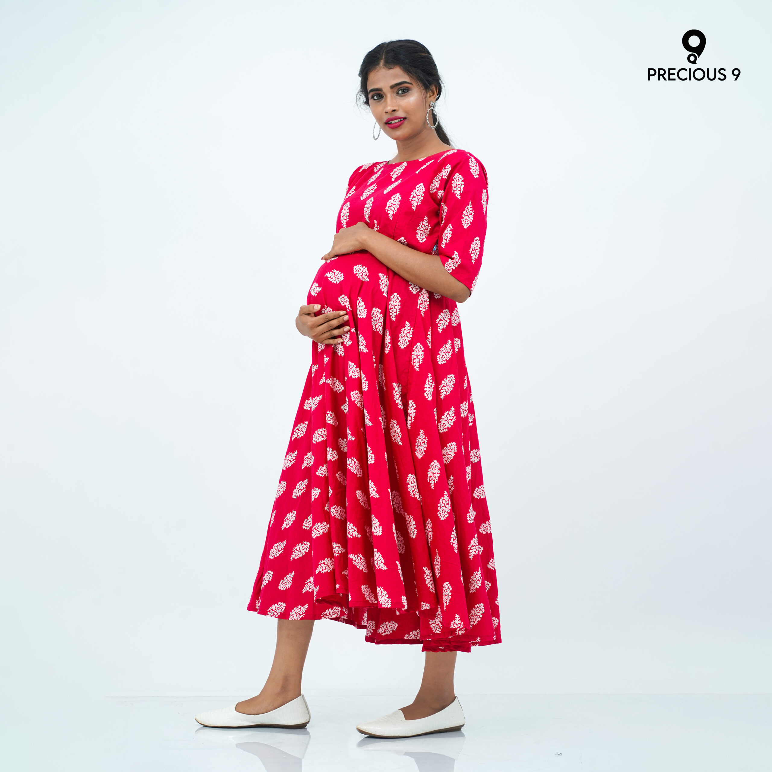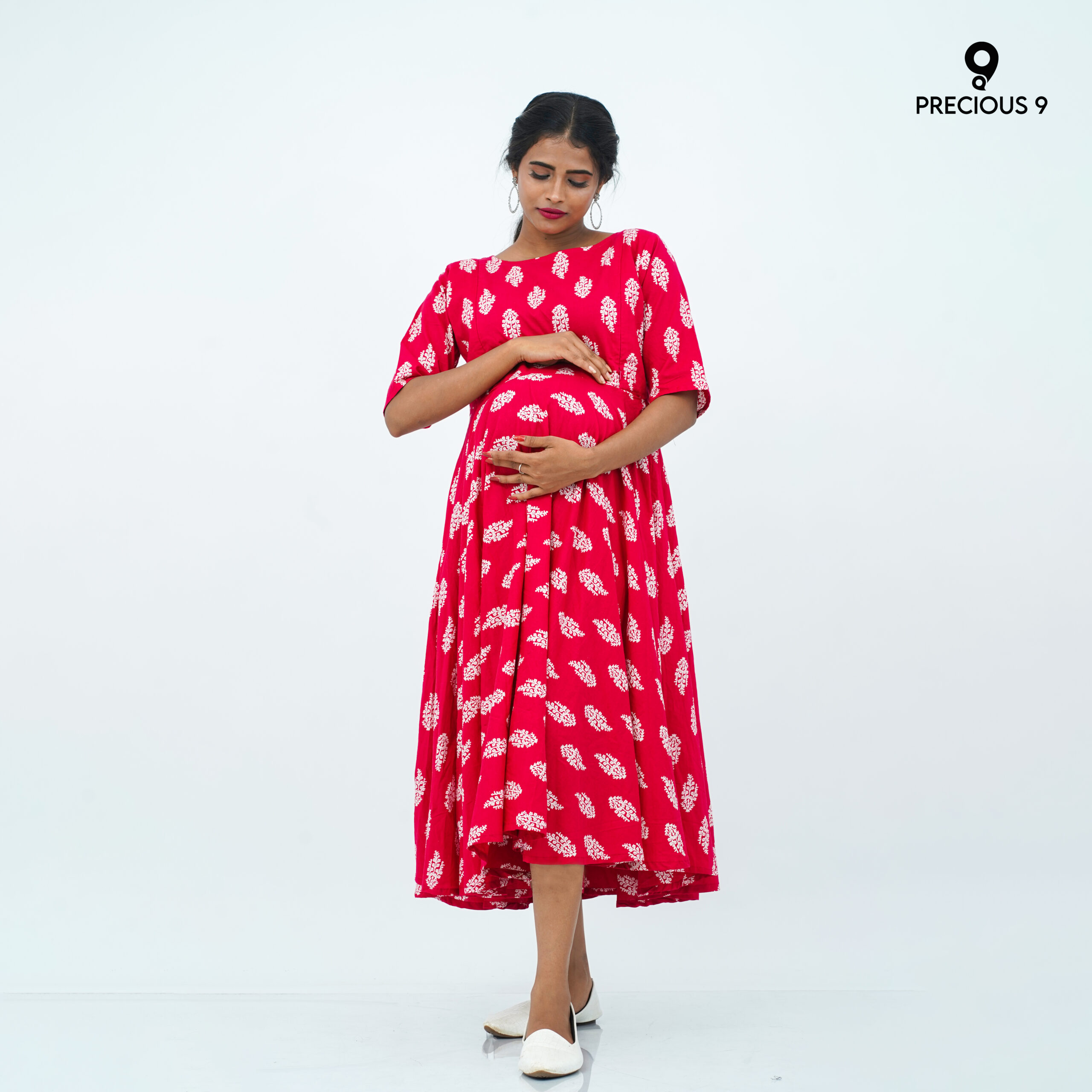 Printed cotton flared maternity dress