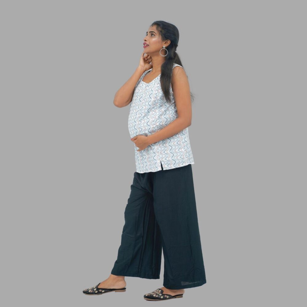 Printed cotton sleeveless maternity short top