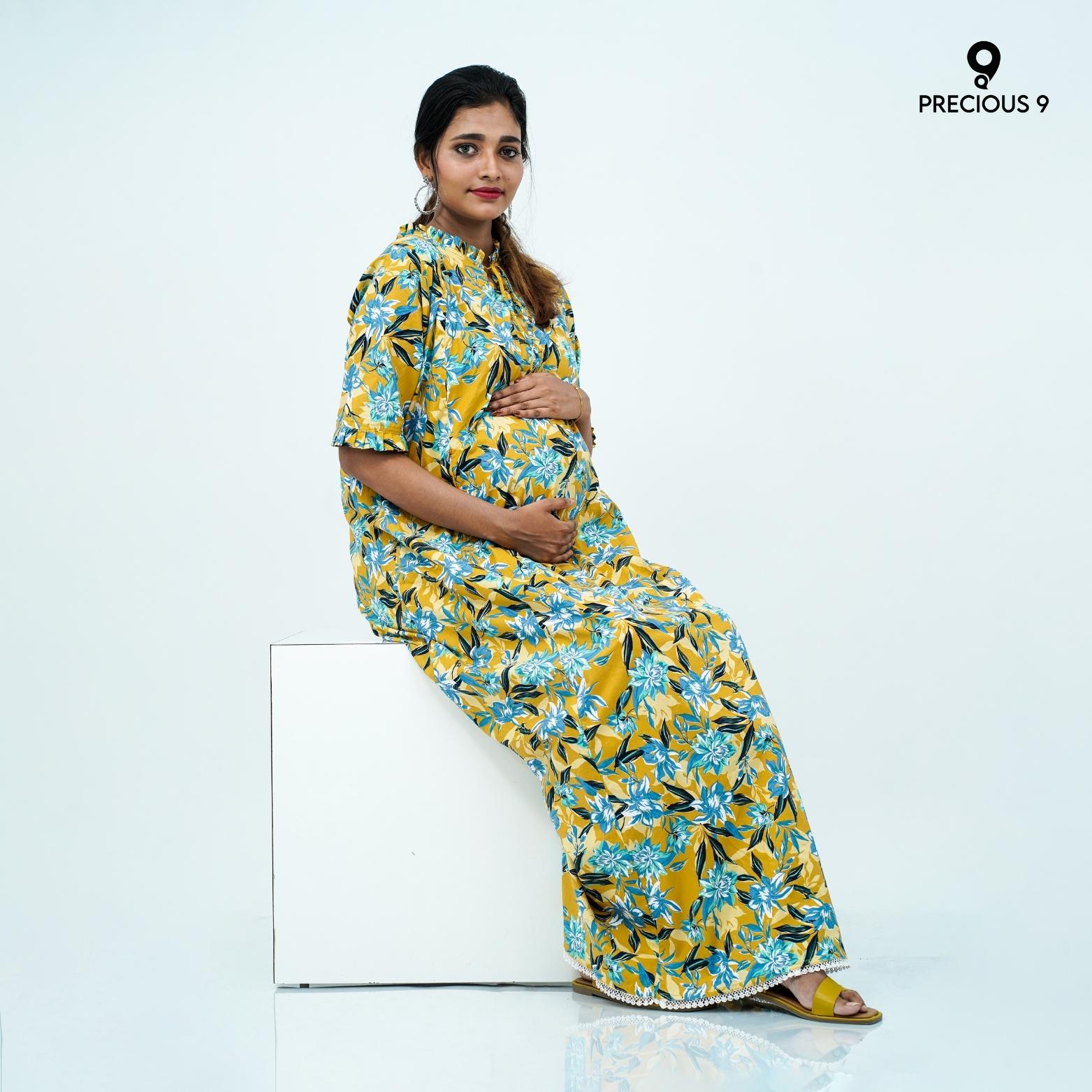 Be the first to review “Printed full-length maternity nightwear with tieup neck” Cancel reply