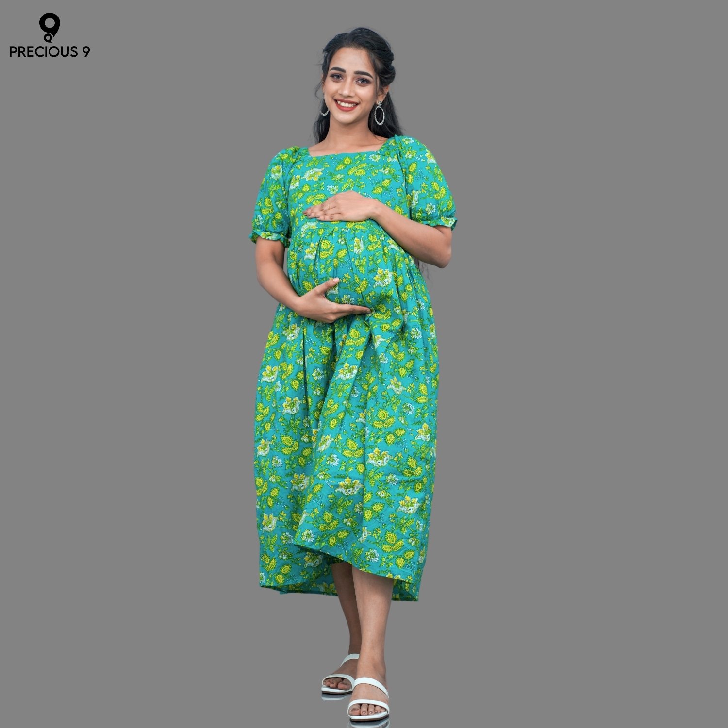 Non slitted pure cotton maternity dress